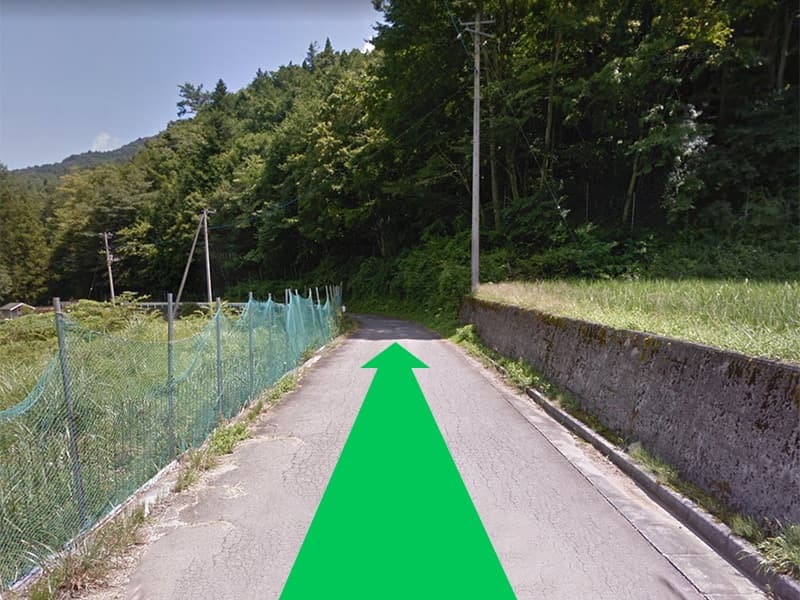 しばらく道なりに進んでいきます。道幅が少し狭くなりますのでご注意ください。