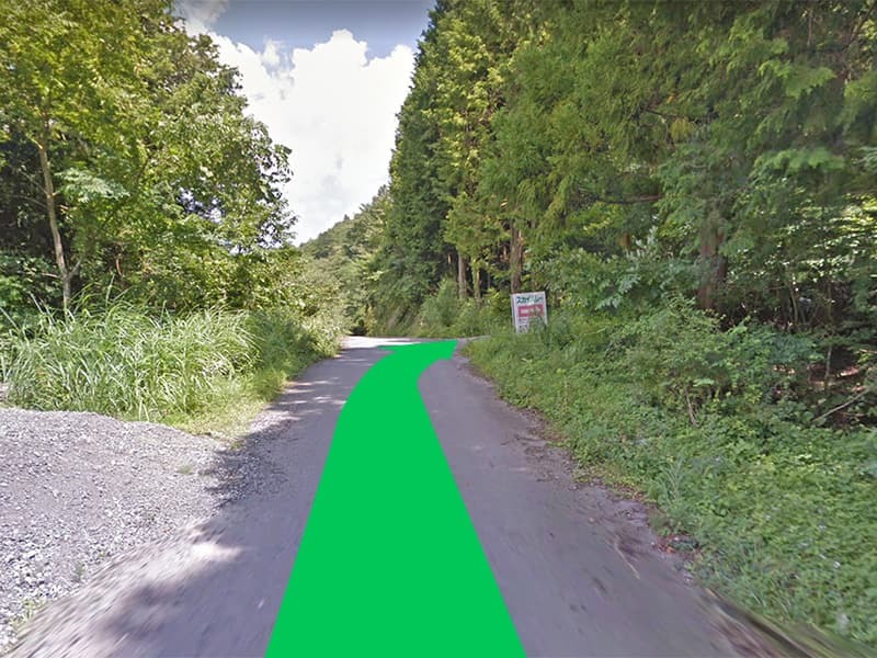 しばらく道なりに進んでいきます。道幅が少し狭くなりますのでご注意ください。